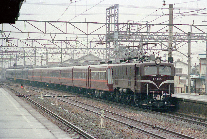 EF58-61 Salon Express + Edo, #8104, Takatsuka sta. / 1987.2.22 / Canon A-1