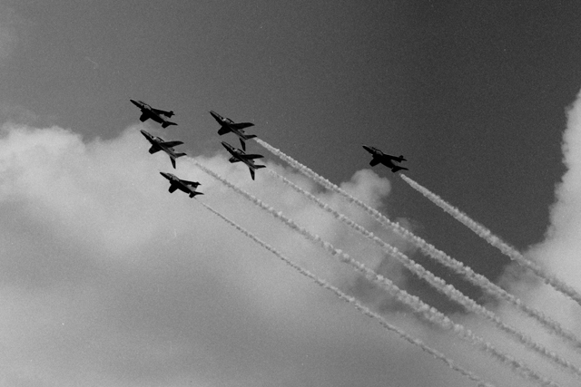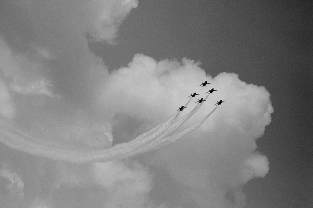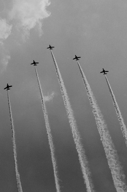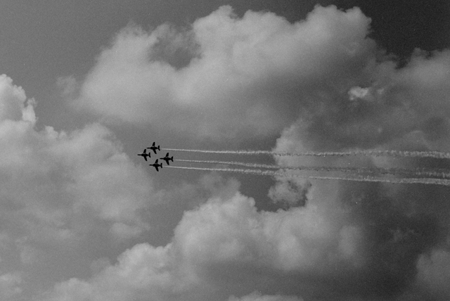BlueImpulse T4, F15 , F2(F16) Sep.9,2007 at JASDF Hyakuri Air Base Canon A-1 85mm F1.2L T-MAX 1/1000 sec. F5.6 - F8
